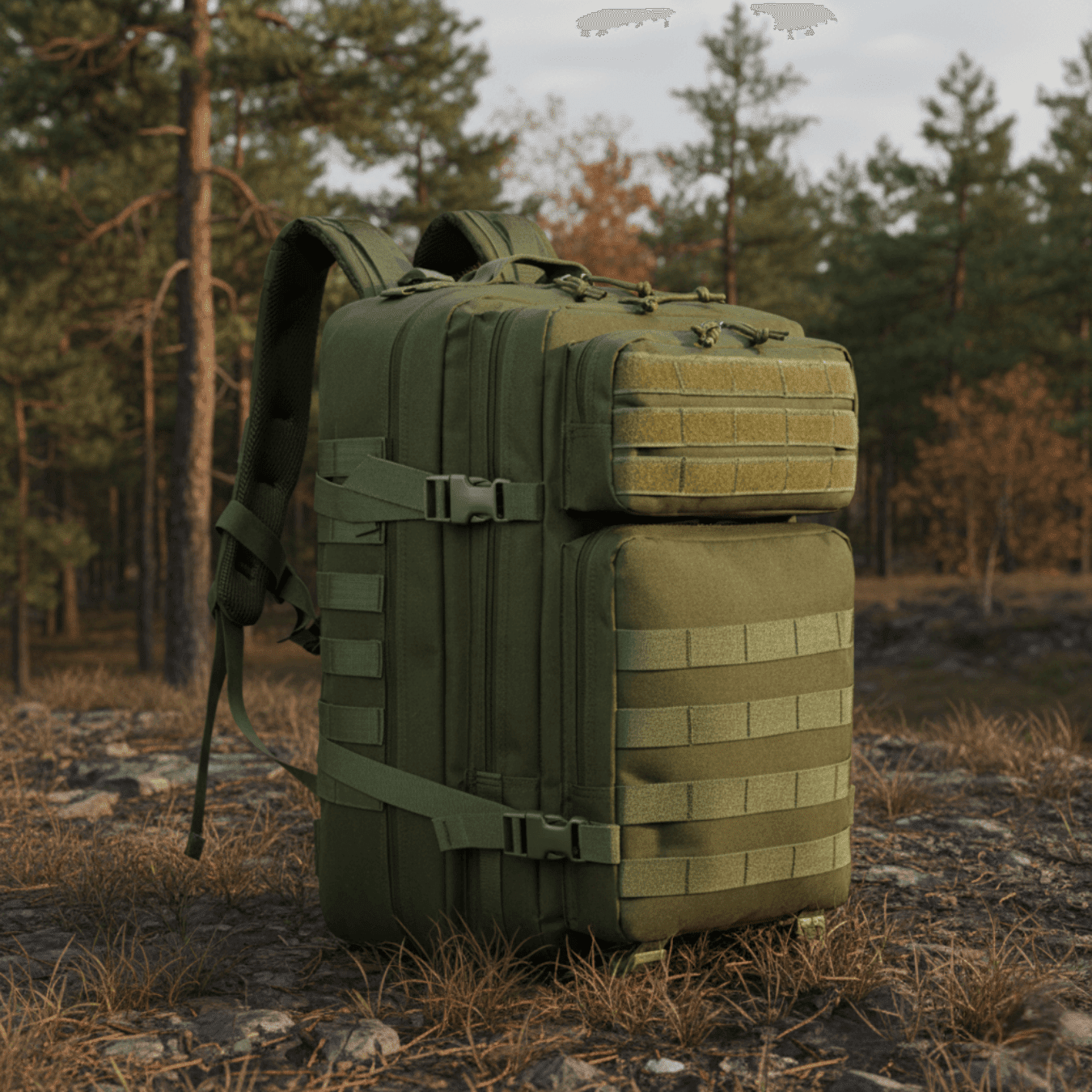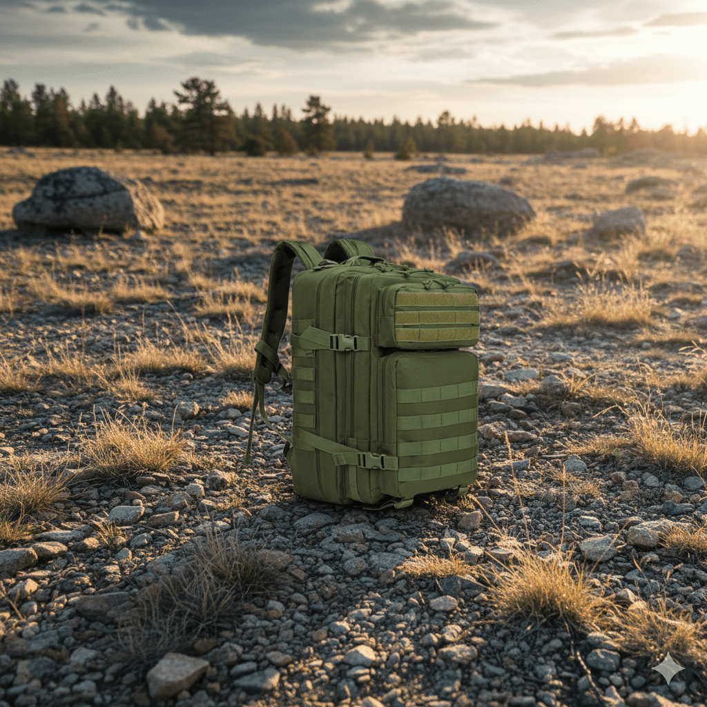 Taktinė kuprinė, pagaminta iš patvaraus „Oxford“ audinio, skirta intensyviam naudojimui lauke – tiek išgyvenimo situacijose, tiek žygiuose ar stovyklose. 45 litrų talpa užtikrina pakankamai vietos būtiniausiems daiktams, o kompaktiški matmenys leidžia lengvai nešiotis net ir pilnai prikrautą.
